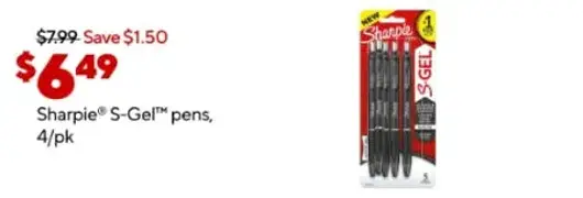 Don't miss out! Shop in store and get $6.49 on $6.49 Sharpie S-Gel™ pens, 4/pk.