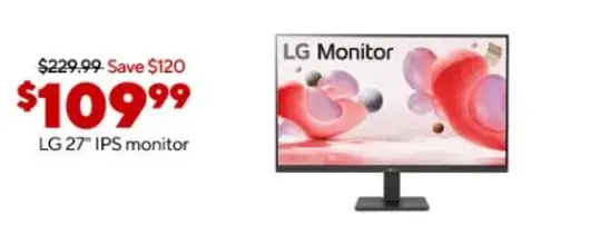 Hurry in and save! Shop in store and get $109.99 on LG 27'' IPS monitor.